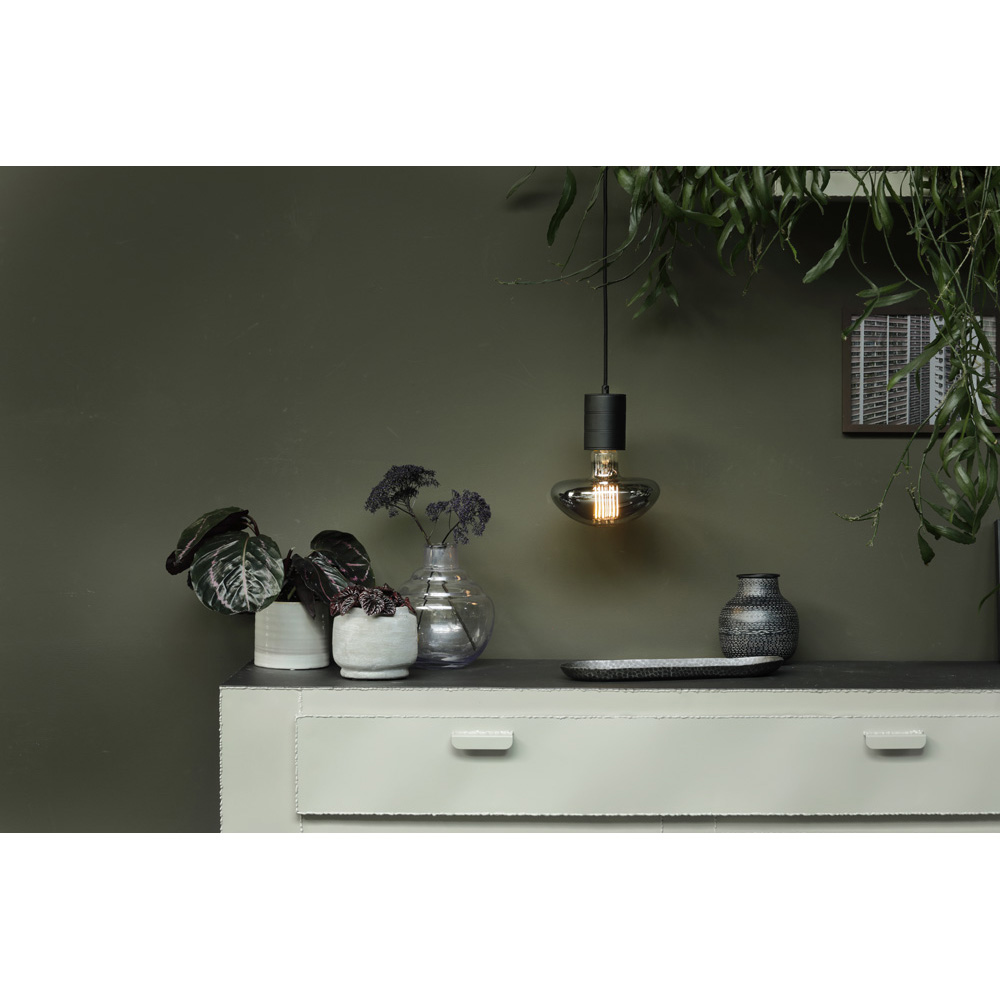 Het paddenstoel model, leuk om op te hangen of in een stolp te draaien. De spiegelachtige Titanium afwerking brengt design naar een hoger niveau. Dit model komt het best tot zijn recht met onze bijpassende E27 pendels.